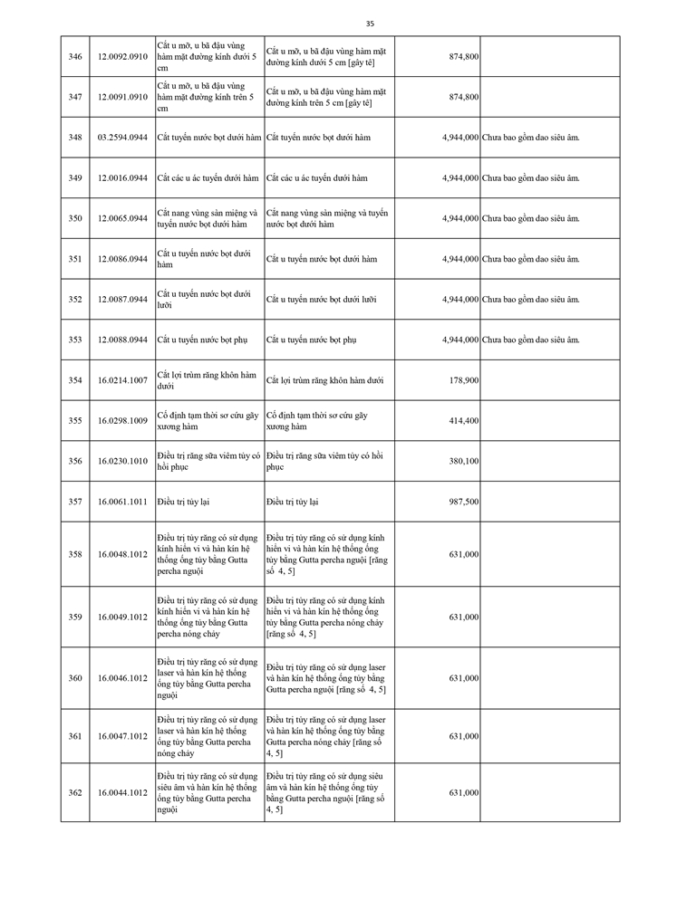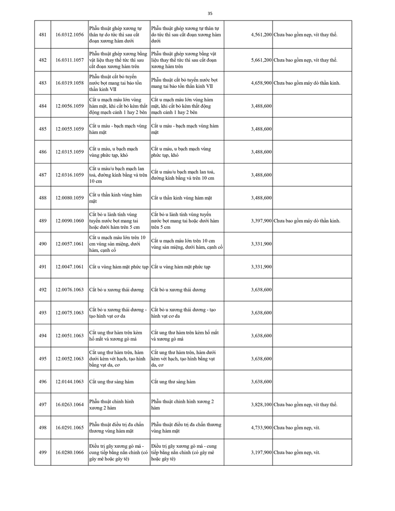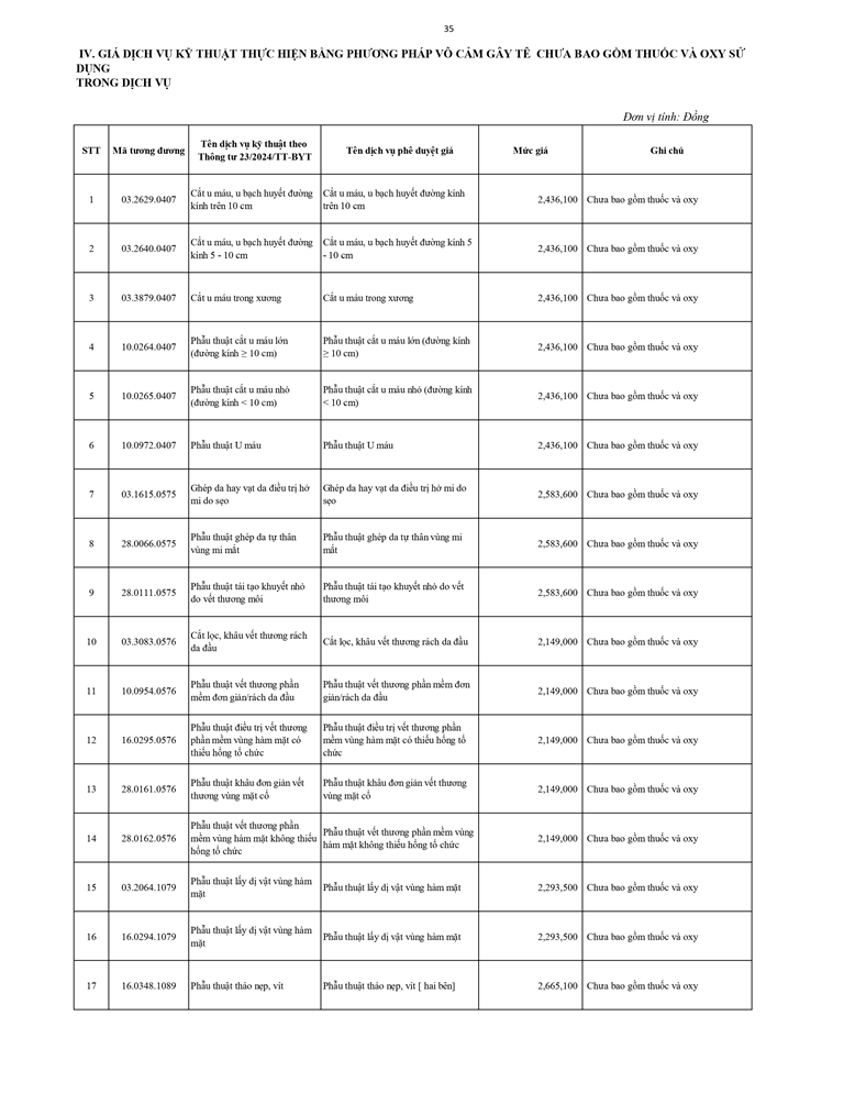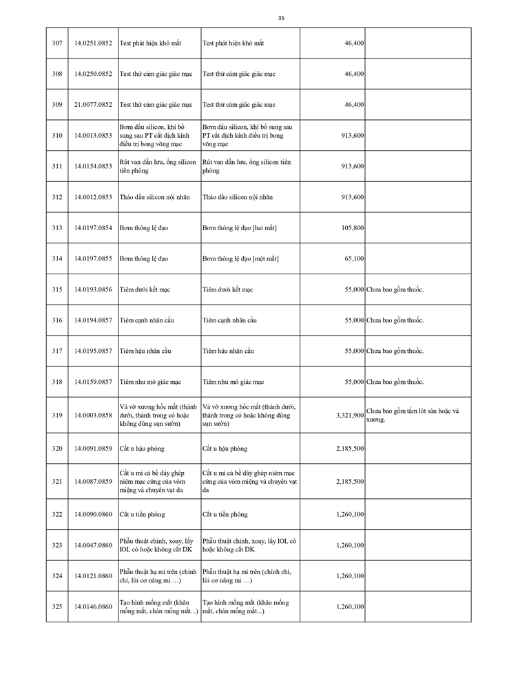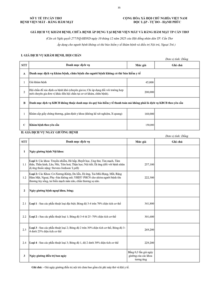 Giá dịch vụ khám bệnh chữa bệnh ( không thẻ BHYT )