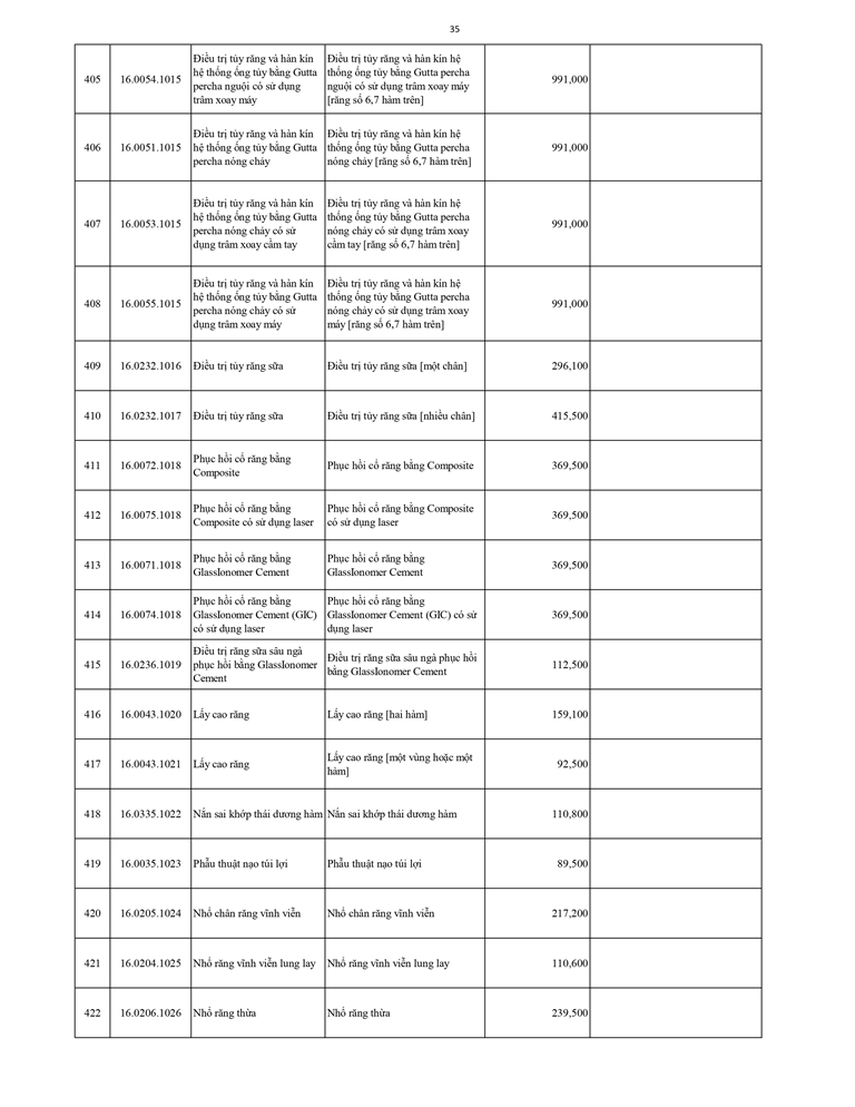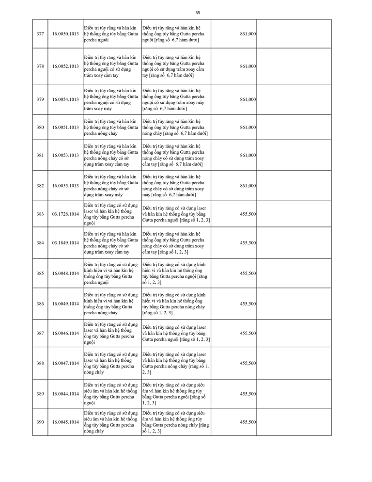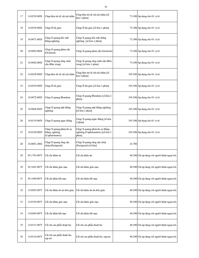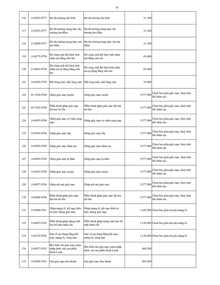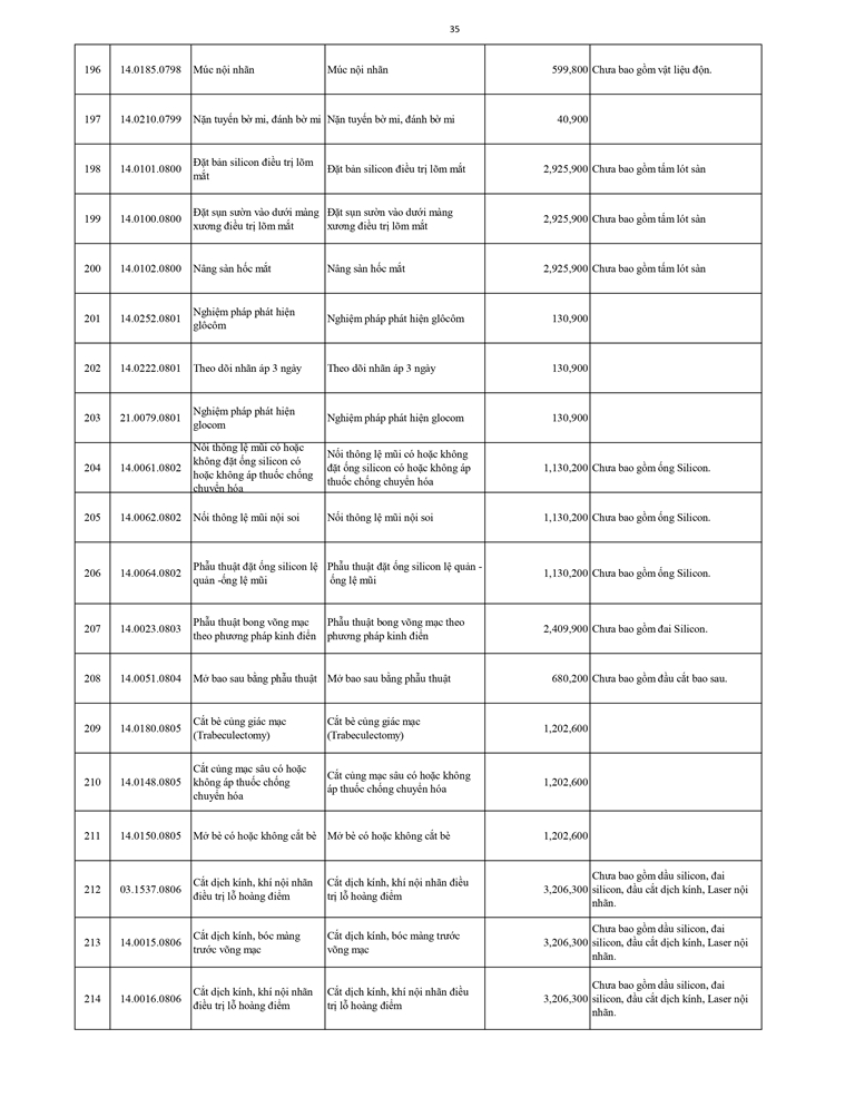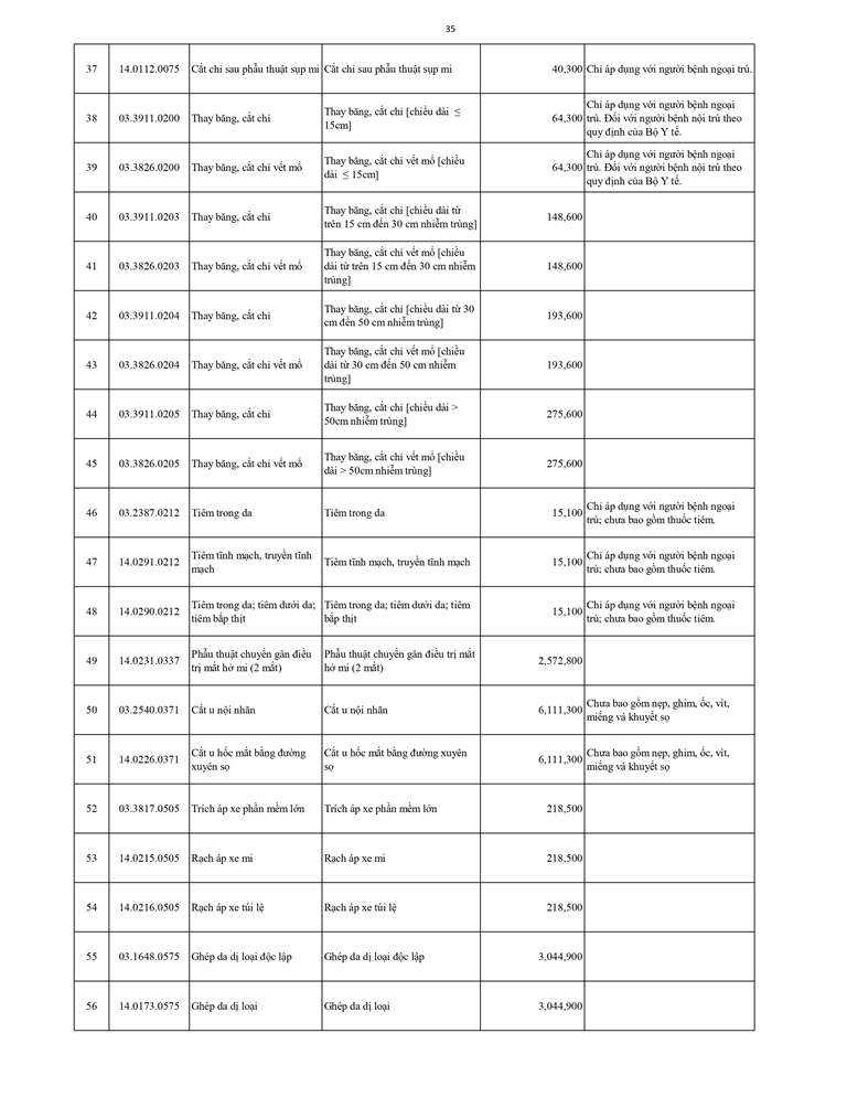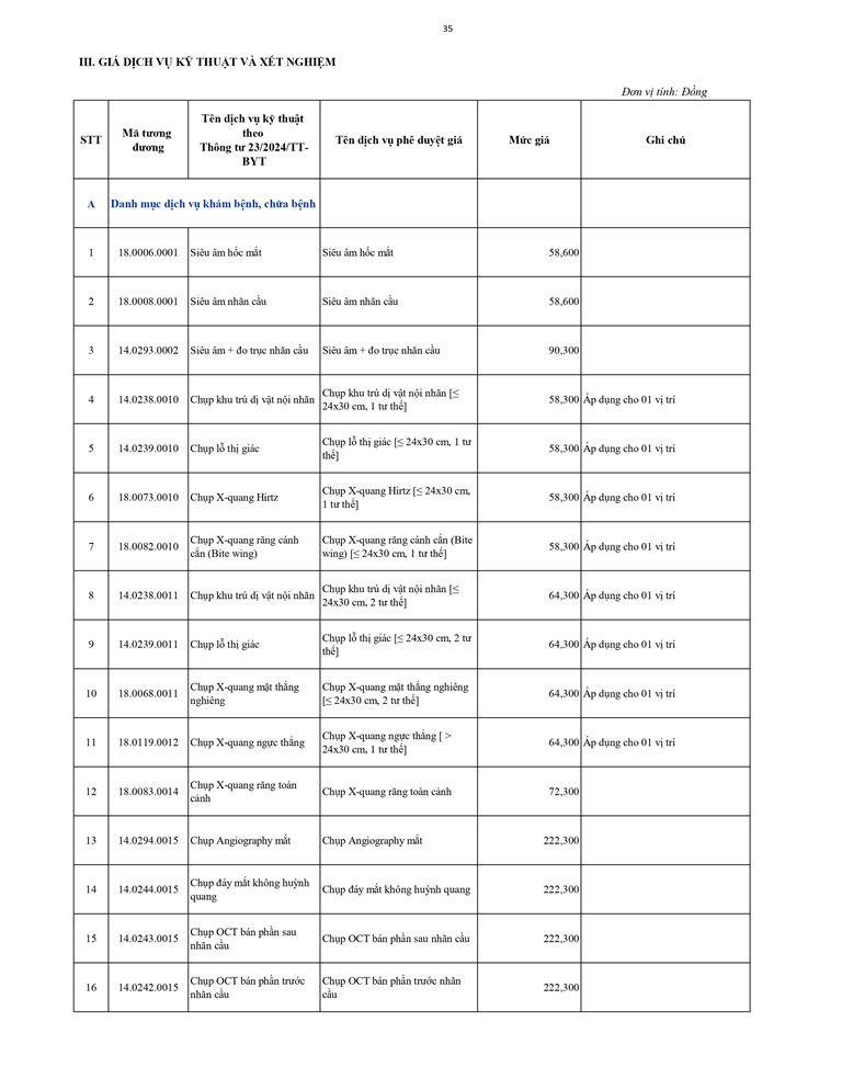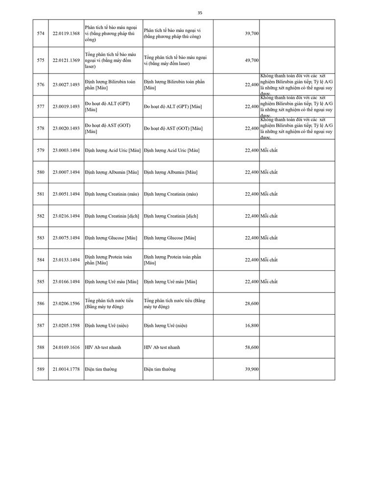 Giá dịch vụ khám bệnh chữa bệnh ( Có thẻ BHYT )